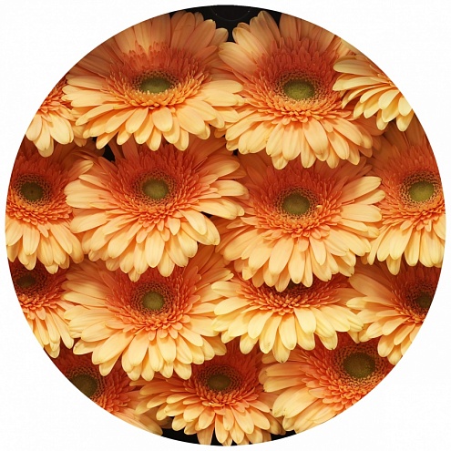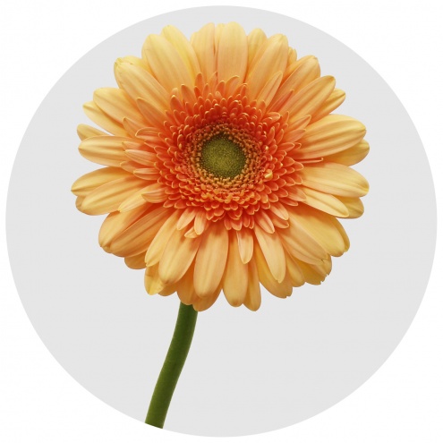 Светлые, кремово-оранжевые лепестки по краю, ярко-оранжевые ближе к центру, зелёная серединка.