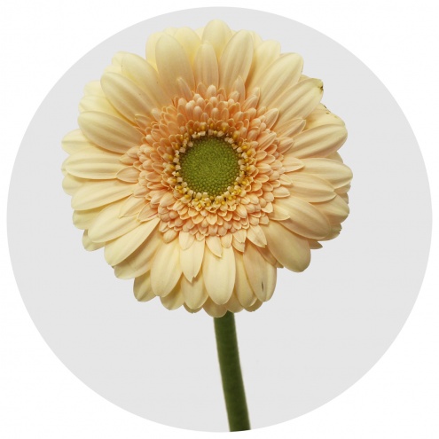 Кремовая мини-гербера с зеленоватым глазком посередине пикантна и безупречна, как самое знаменитое в мире шампанское Moёt.