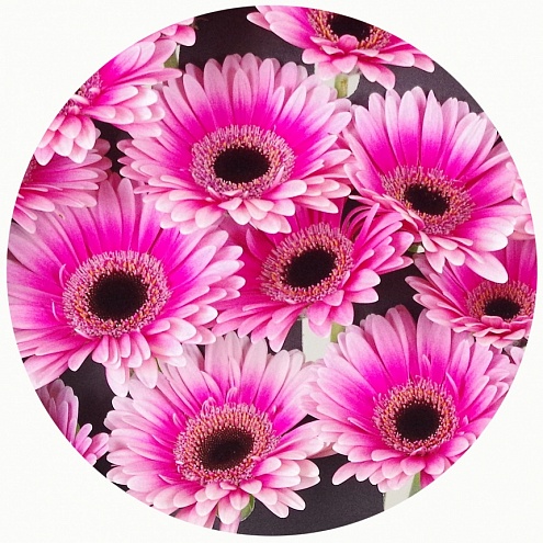 Очень эффектная розово-белая гербера с чёрной серединкой. Выглядит очень современно, стильно, неординарно.