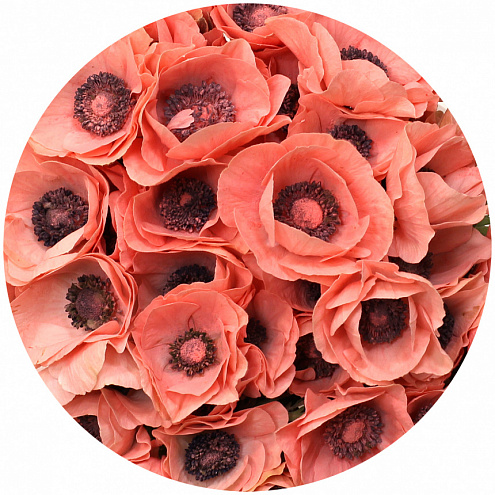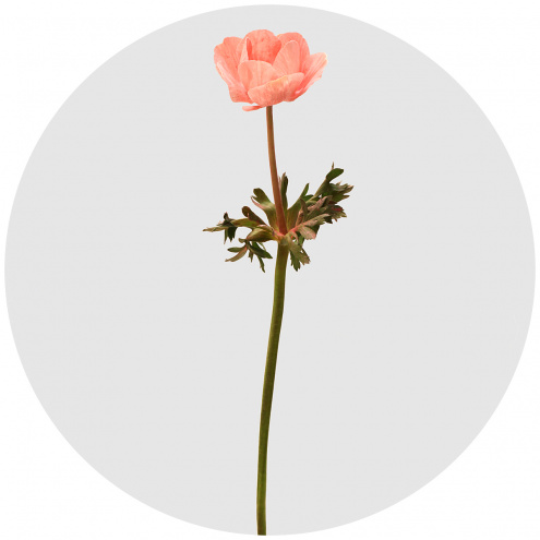 Эрика; анемон розово-персикового оттенка, слегка как бы "припудренный". Такое новшество ещё больше смягчает и без того мягкий окрас, делая цветок "невинно-юным".