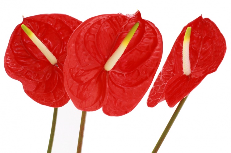 Антуриум Этерно (Eterno) - ярко-красный с бело-жёлтым початком.