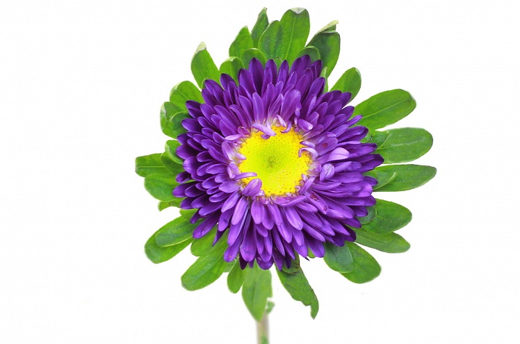 Астра с тёмно-фиолетовыми лепестками и жёлтой серединкой.