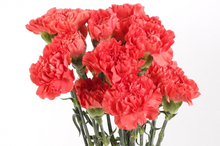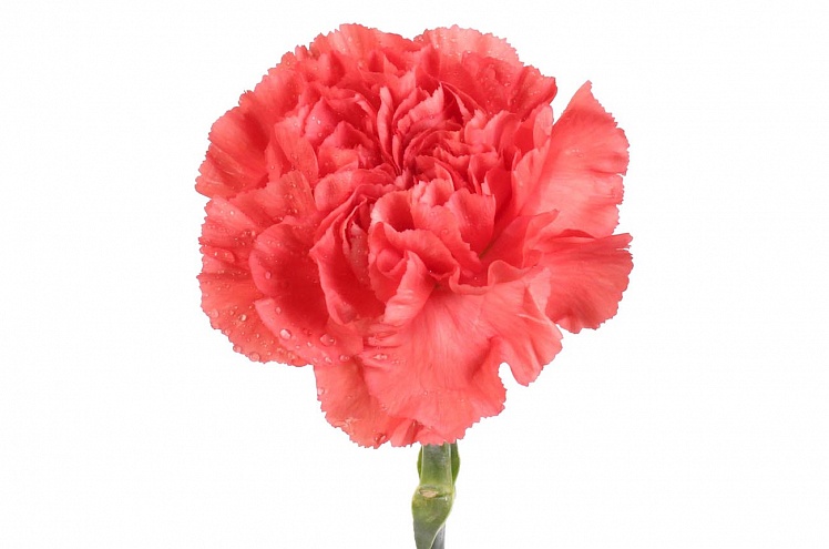 Красно-коралловая гвоздика стандарт. Не слишком романтично-нежная, не слишком страстная, не слишком официальная. Идеальный тёплый цвет, призванный не восхищать, а радовать.