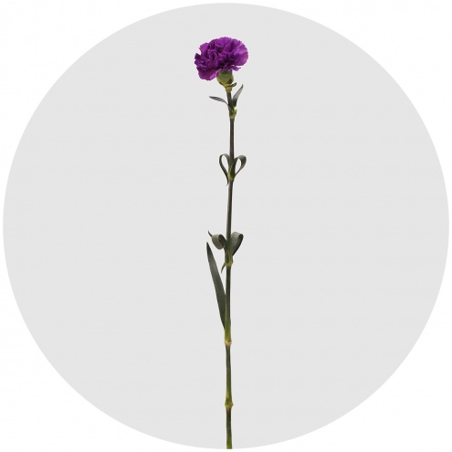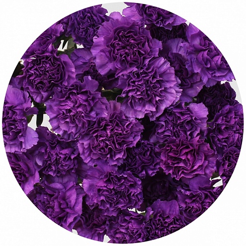 Махровая гвоздика из "лунной" серии (Moon). Крупные (5-7 см) цветки необычно холодного, тёмно-фиолетового оттенка как будто освещены лунным светом. Оригинально и романтично.