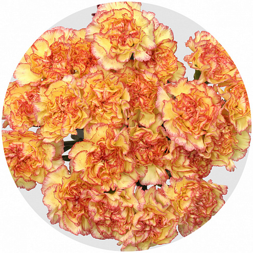 Komachi Fiesta - яркая, жёлто-розовая гвоздика. С праздничным названием и очень праздничного вида.