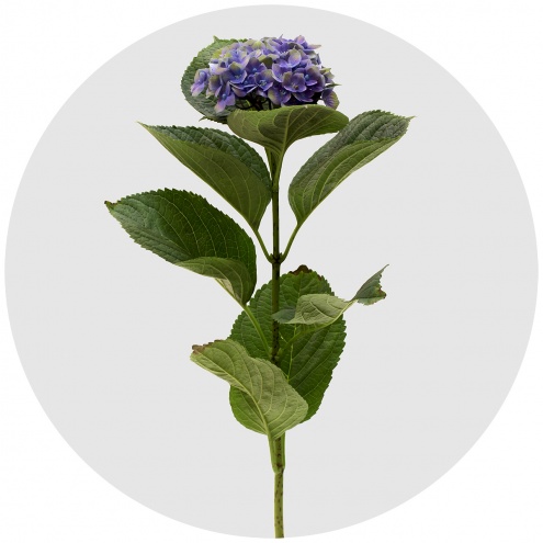 Гортензия из сортосерии "Аметист"; лилового (фиолетового) цвета. Сорт выведен в Великобритании ещё в 1938 году. На стебельке от 4 до 8 чашелистиков; их уникальность в том, что одинарные и двойные цветочки появляются в одном и том же щитке. Чашелистики зубчатые, перекрывающиеся.