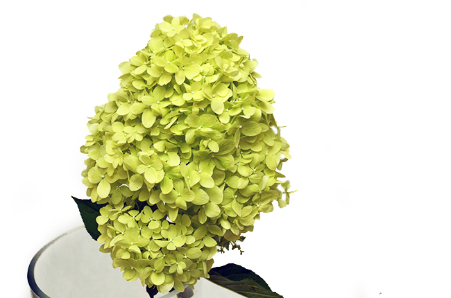 На языке цветов гортензия означает «Вспомни обо мне» и является символом скромности, искренности, надежды. Многолетний кустарник родом из юго-восточной Азии, где его в просторечии называют «модницей» за многообразие окраски: помимо белого это красный, розовый, фиолетовый, синий, сиреневый оттенки. Чай из листьев гортензии – амача - является ритуальным напитком у буддистов. В Японии её также называют «тоскующая по воде» и «фиолетовое солнце». Научное название – Hydrángea(лат. «сосуд с водой»). Собственно же название «гортензия» происходит от имени принцессы Гортензии, сестры принца Священной Римской империи Карла Генриха Нассау-Зигена, а в Европу этот цветок попал в конце 18 века благодаря Филиберу Коммерсону, французскому натуралисту.