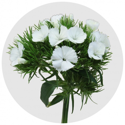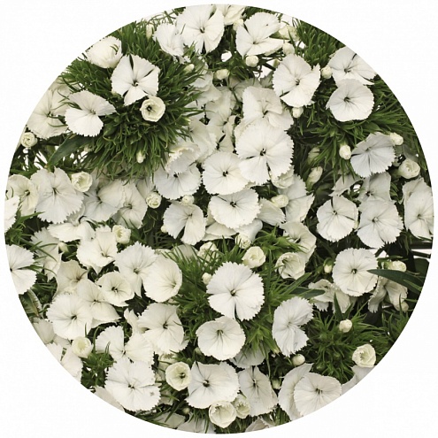 Гвоздика турецкая сортосерии Aldo, чистого белого цвета.