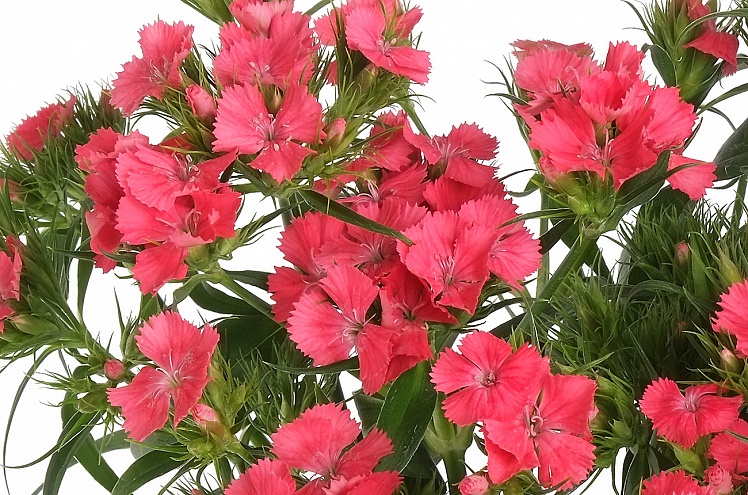 Диантус барбатус (лат. Diánthus barbátus) - гвоздика турецкая, или гвоздика бородатая. Культивирование цветка началось много веков назад на юге Европы и в Азии; в 16 веке он был уже очень популярен во всей Европе. Небольшие цветки размером 1,5-3 см собраны в щитковидные / шапковидные соцветия. На одном растении может быть несколько соцветий, а в одном соцветии может быть до 30 цветков, поэтому внешне это выглядит как небольшой цветущий кустик. Выведено огромное количество сортов этого растения самых разнообразных цветов, оттенков и их смешений.