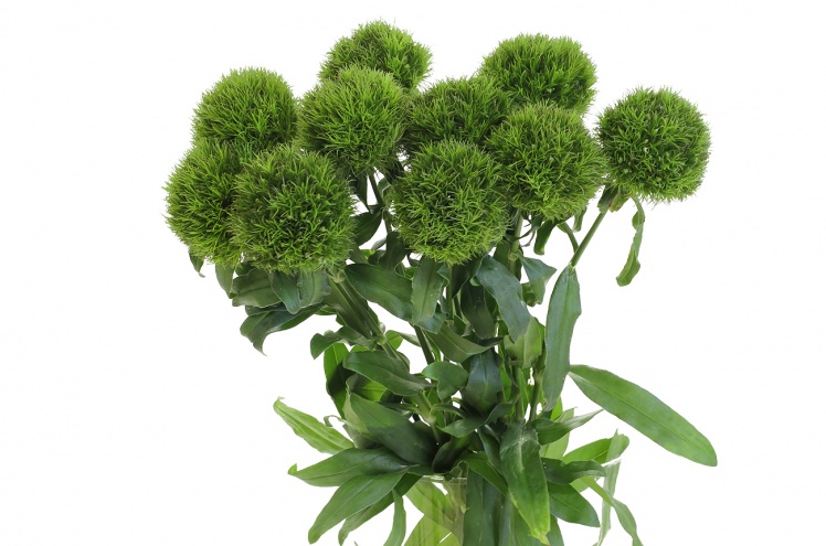 Этот зелёный пушистый шарик - гвоздика Грин Трик, самая необычная и оригинальная из гвоздик.