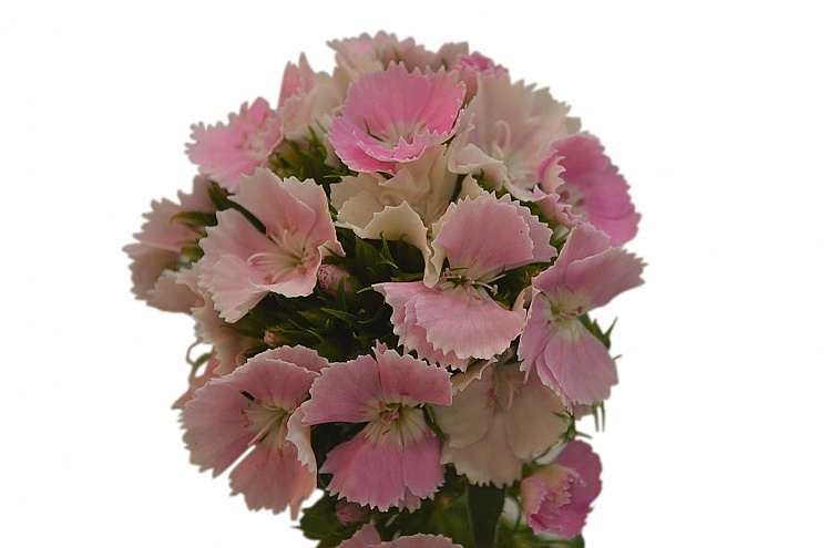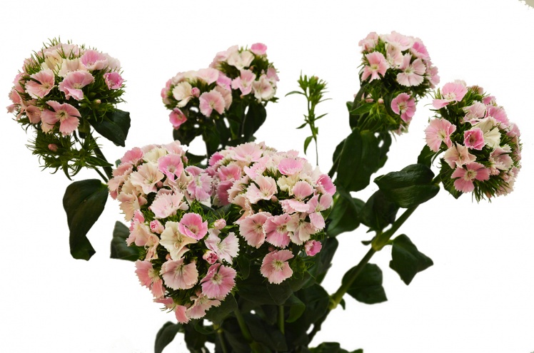 Диантус барбатус (лат. Diánthus barbátus) - гвоздика турецкая, или гвоздика бородатая. Культивирование цветка началось много веков назад на юге Европы и в Азии; в 16 веке он был уже очень популярен во всей Европе. Небольшие цветки размером 1,5-3 см собраны в щитковидные / шапковидные соцветия. На одном растении может быть несколько соцветий, а в одном соцветии может быть до 30 цветков, поэтому внешне это выглядит как небольшой цветущий кустик. Выведено огромное количество сортов этого растения самых разнообразных цветов, оттенков и их смешений. В данном случае это гвоздика с розовыми лепестками.