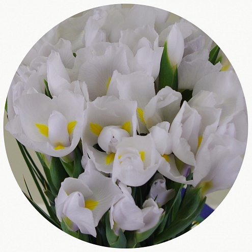Ослепительно белые, как снег на горной вершине, ирисы "Касабланка". Цветы, восхищающие свое скромностью и нежностью.