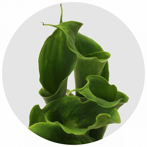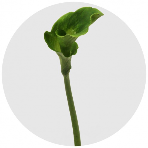 "Зелёная богиня" - эфиопская калла (Aethiopica) тёмно-зелёного цвета со светлой, почти белой серединой.