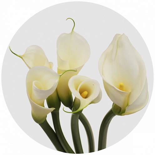 Калла эфиопская Colombe De La Paix - "Голубь мира". Название сорта как будто является продолжением названия вида, который в России называют "Белокрыльник". Традиционного белого цвета, с жёлтым початком. Прекрасный вариант для свадебного букета, хорошая доминанта для сложной композиции.