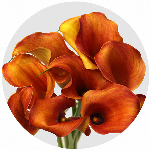Жёлто-оранжевая калла из сортосерии Capitain Calla. Цветок совершенно восхитительной, "пылающей", "осенней" расцветки.
