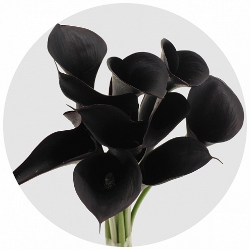 Тёмно-бардовая, выглядящая практически чёрной калла. Цветок одновременно роскошный и строгий, как фрак. И кажется совершенно закономерным, что он имеет немецкое происхождение. Шварцвальдер - название местности в Германии.