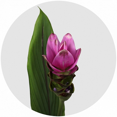 Куркума - растение из семейства имбирных, прекрасно известное тем, что из него делают одноимённую пряность. Также имеет заслуженную репутацию и среди целебных растений. Однако эти заслуги не умаляют значимость куркумы как растения декоративного. Внешне напоминающее лотос, оно имеет высокий и крепкий цветонос и чрезвычайно красивое соцветие из нежных лепестков. Выглядит очень эффектно, очень экзотично и очень "по-восточному". Хотите сделать изящный и одновременно оригинальный подарок - вот, извольте, прекрасная куркума к Вашим услугам...