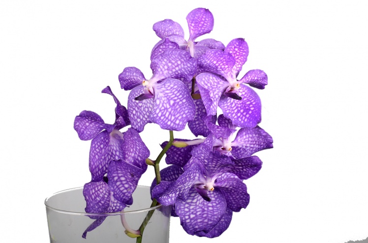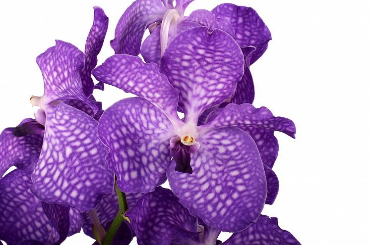 Популярнейшая орхидея. Глубокий фиолетовый цвет с белыми вкраплениями, расположенными не хаотично, а виде решётки. Крупный размер цветка - до 15 см. Прекрасна и загадочна, как вечернее небо с первыми звёздами.