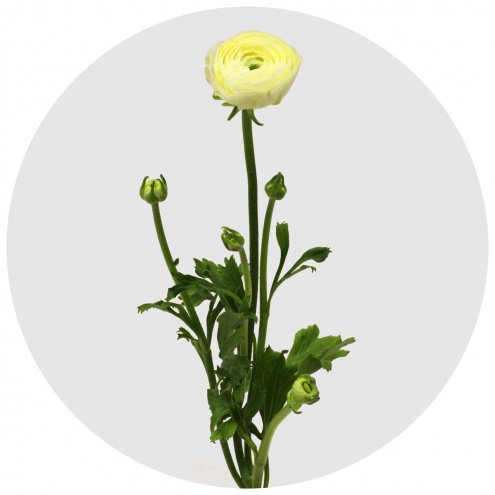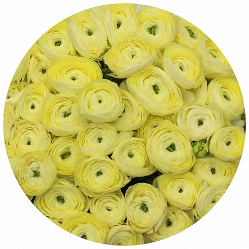 Ранункулус Клуни - великолепный цветок, больше похожий на пионовидную розу, чем на своего скромного прародителя лютика. В данном случае светло-жёлтого, лимонного оттенка. Прекрасный намёк (той, которой дарится цветок) на то, какая красота может таиться в природной скромности...