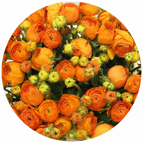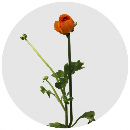 Ранункулус Клуни - великолепный цветок, больше похожий на пионовидную розу, чем на своего скромного прародителя лютика. В данном случае - ярко-оранжевого оттенка. Прекрасный намёк (той, которой дарится цветок) на то, какая красота может таиться в природной скромности...