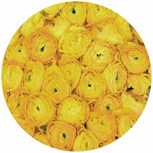Ранункулус Клуни - великолепный цветок, больше похожий на пионовидную розу, чем на своего скромного прародителя лютика. В данном случае - яркого жёлтого цвета. Прекрасный намёк (той, которой дарится цветок) на то, какая красота может таиться в природной скромности...