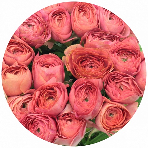 Ранункулус Клуни - великолепный цветок, больше похожий на пионовидную розу, чем на своего скромного прародителя лютика. В данном случае - цвета знаменитого итальянского игристого вина. Прекрасный намёк (той, которой дарится цветок) на то, какая красота может таиться в природной скромности...