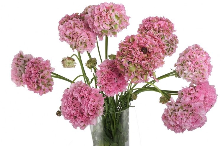 Ранункулус Пон-Пон своим шарообразным бутоном похож на этот самый помпон, мягкий шарик от одежды. Волнистые густые лепестки, которые так и хочется погладить, могут быть самых различных цветов и их сочетаний, в данном случае - светло-розового.