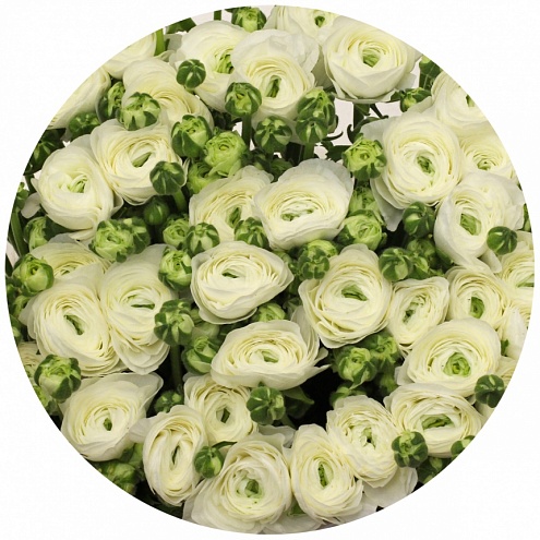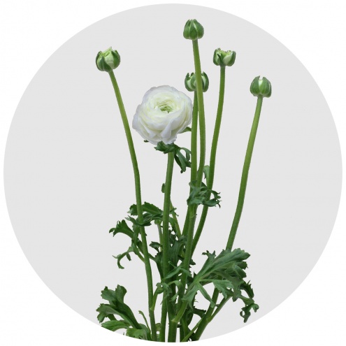 Ранункулус Клуни - великолепный цветок, больше похожий на пионовидную розу, чем на своего скромного прародителя лютика. В данном случае - чистого белого цвета. Прекрасный намёк (той, которой дарится цветок) на то, какая красота может таиться в природной скромности...