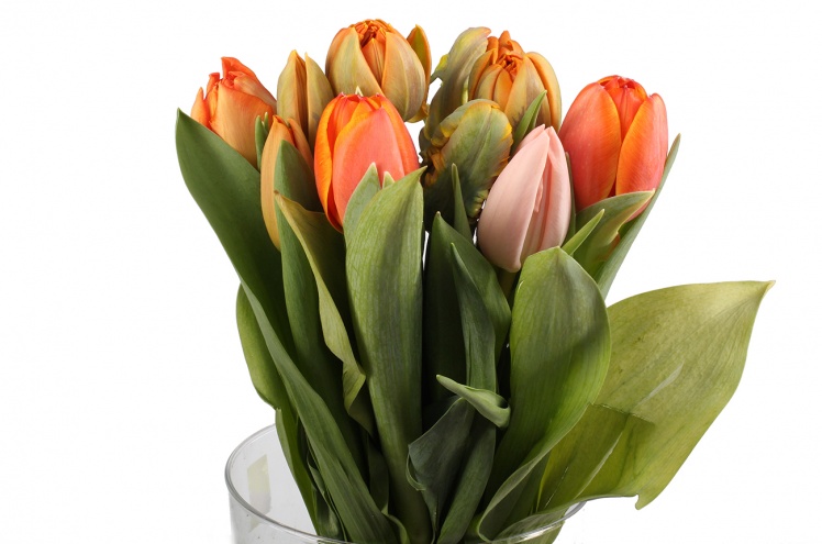 Знаменитый цветок, культивирующийся сотни лет, был описан впервые в 16 веке. Происходит из Центральной Азии, а не из Голландии, как считают многие. Само название цветка - "Tulipa" - происходит от персидского "toliban" (тюрбан, головной убор). В настоящее время существует множество сортов тюльпанов различных форм и расцветок - от белого до чёрного. Тюльпаны используются как для составления монобукетов, так и для составления флористических композиций. Традиционно тюльпаны считались символом весны, но в наше время они доступны круглый год.