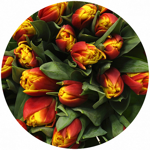 Силеста - махровый тюльпан. Пёстрый, нарядный. Ярко-красные в ярко-жёлтом обрамлении лепестки буквально пламенеют и обжигают весенним горячим солнцем. От поля таких тюльпанов, наверное, просто захватило бы дух, но даже небольшой букет из них способен на многое...