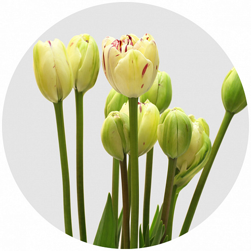 Жонкьер - двухцветный тюльпан, названный сенсацией. Кремовые лепестки с пятнами пурпурного цвета становятся ярко-розовыми по мере взросления цветка. Ну а название цветок "позаимствовал" у французского городка, находящегося где-то по соседству с Лазурным берегом...