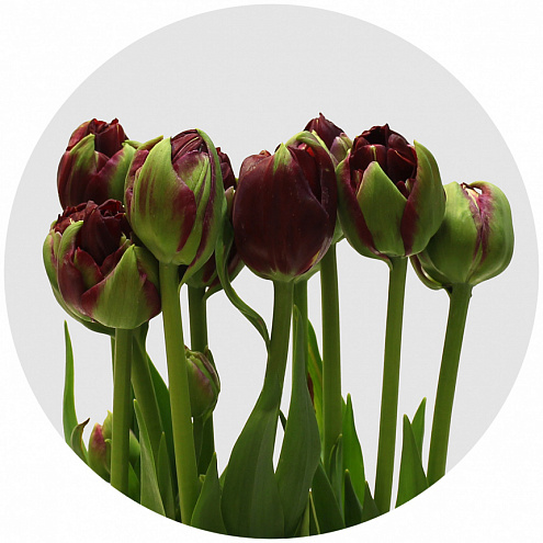 Emblazon - махровый тюльпан с бутоном пионовидной формы. Длина стебля 50 см; цвет лепестков - пунцово-красный. Название данного сорта трудно однозначно перевести на русский язык - это может быть и "украшать", и "прославлять" - одним словом, делать лучше.