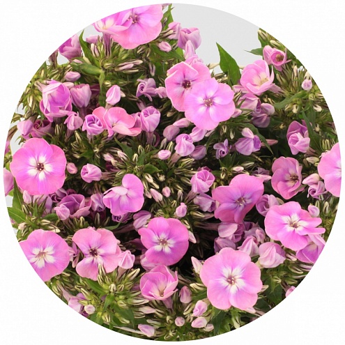 Флокс "Сеньора" - светло-розовый; у центра лепестки имеют белый цвет.. Весьма популярен в свадебной флористике.