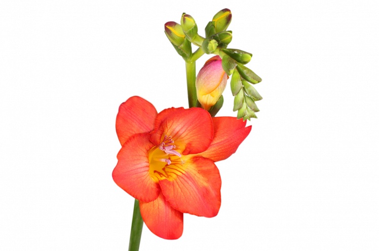 Фрезия - растение из семейства ирисовых; происхождение - Южная Африка, в основном - Капская область. Поэтому цветок часто называют "капским ландышем". Название "фрезия" происходит от фамилии немецкого врача и ботаника Фридриха Фрезе, внёсшего немалый вклад в культивирование растения. Цветки фрезии воронкообразные, похожие на колокольчики, собраны в соцветия из 5-15 цветков. Однако основным достоинством растения считается не внешний вид, а аромат, напоминающий ландыш. Фрезия упоминается в названиях парфюма; цветок активно используется в аромотерапии.