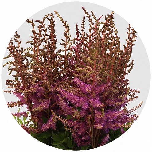 Аметист - сорт из группы астильбы Арендса. Название минерала выбрано не случайно - растение имеет схожий оттенок. Используется во флористике и в качестве сухоцвета, и в качестве срезки. Необычная, ажурная внешность вкупе с нежным оттенком позволяет с большим успехом применять астильбу для аранжировки букетов, в частности - свадебных.