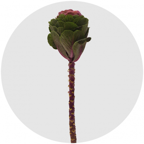 Брассика Крейн красная. Декоративная капуста красно-фиолетового цвета. Как и у других сортов брассики, внешние листья - зелёного цвета.