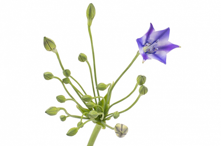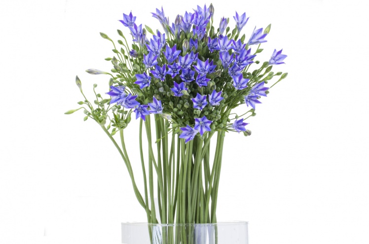 Бродея (бродиэя), или трителея - растение с американского континента, где в просторечии называется "индейский картофель". Разумеется, не просто так, а из-за того, что индейцы издревле употребляли в пишу клубни растения. Однако это ничуть не умаляет его эстетических достоинств. Нежные цветки-колокольчики, раскрывающиеся в виде звезды, выглядят, как сказочная иллюстрация и добавляют букету утончённости и изысканности.