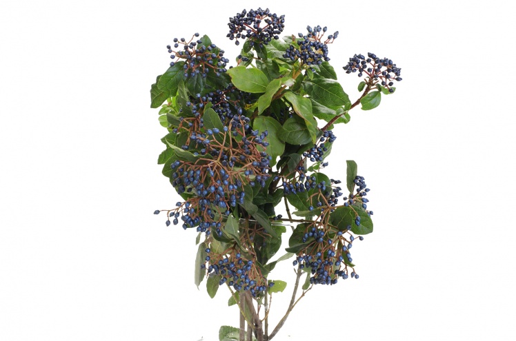 Чёрная калина имеет острые листья, тёмно-зелёные сверху и светло-зелёные снизу. Цветки довольно скромные, но во флористике ценятся не они, а плоды - чёрные красивые ягоды, растущие гроздьями.