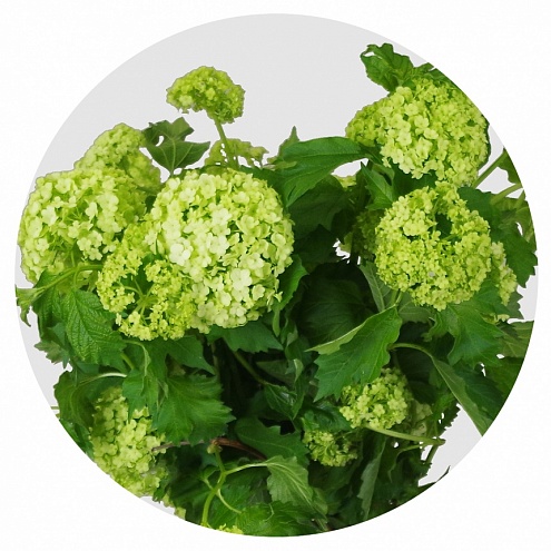 Данный сорт родом с американских Анд, имеет пышные шарообразные соцветия светло-салатового оттенка. Довольно необычный внешний вид сделал вибурнум очень популярным у флористов; он с успехом применяется для составления букетов, добавляя им пышности и экзотики.