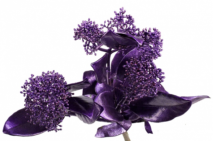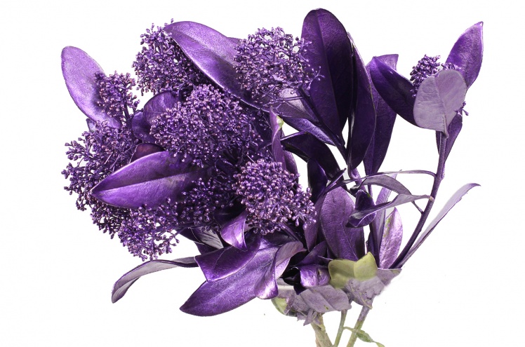 Скиммия - вечнозелёный кустарник семейства рутовых, родом из Юго-восточной Азии. Листья зелёные, сверху темнее, чем снизу, иногда с красно-коричневой окантовкой. На изнанке листа находятся особые железы, начинающие выделять ароматические вещества при прикосновении. Цветёт мелкими цветками, которые собраны в плотные кисти. Но основная прелесть скиммии  в густорастущих ярко-красных ягодах, придающих особый колорит флористическим композициям.