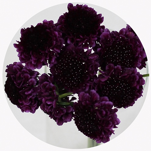 Скабиоза - растение семейства Жимолостных, подсемейство - ворсянковые. В диком виде растёт в умеренном климатическом поясе Евразии. Название растения переводится как "чесотка" - растения использовали для лечения этой болезни. В России скабиозу называют василек чесотный, пупошник, шишкорник; в Англии - булавочной подушечкой, на которую она, действительно, очень похожа.