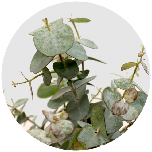 Эвкалипт Гунни (Ганна, Ганни). Листочки эллиптические (сердцевидные), плотные с красивым синим или голубым оттенком.