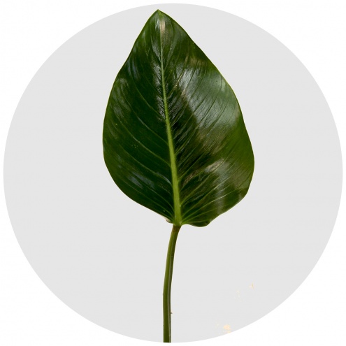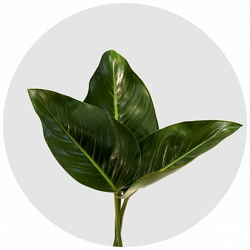 "Конго" - филодендрон с крупными глянцевыми тёмно-зелёными листьями. Отличный стаффаж; размер, цвет и форма прекрасно подчёркивают и оттеняют цветы в букете.