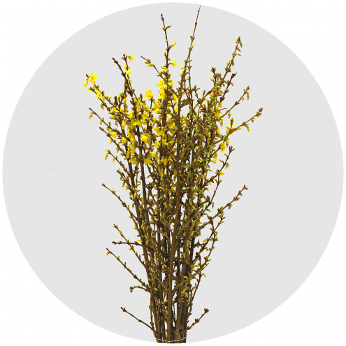 Форзиция (Forsythia), или форсайтия - род кустарников семейства маслиновые. Естественный ареал произрастания - Восточная Азия, а также, европейские Балканы. В Европе растёт только один вид, который так и называется: Форзиция европейская. Цветёт кустарник маленькими цветками насыщенно-желтого цвета.