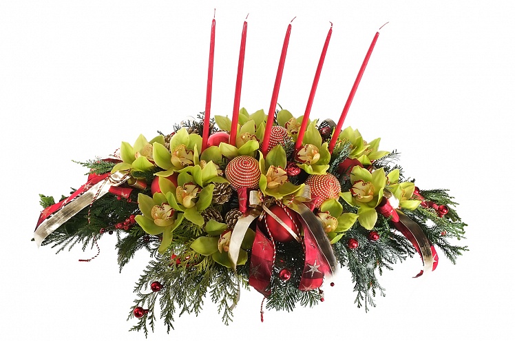 - Настольная композиция Ц 49 (Центральный салон) лучше всего походит к событиям: День рождения, Новый год, Сезонные композиции, Юбилей компании, Любовь.